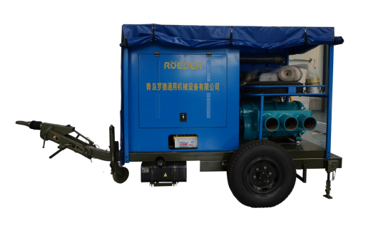 羅德拖車式移動泵車由凸輪轉(zhuǎn)子泵、柴油機\電機、拖車底盤、防護箱體、操作系統(tǒng)等組成。