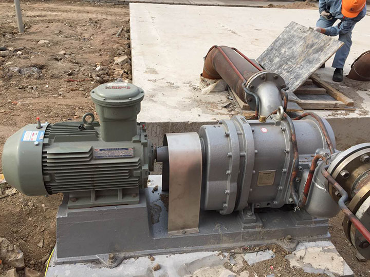 一個煉化廠設計了2臺事故水提升泵。要求當事故發(fā)生時,來自聯合裝置的事故及排水通過裝置內雨水明溝,自流排入事故排水緩沖池,加壓到0.5MPa后,由管道送入2.2KW外的事故水存儲管儲存。需要事故水泵具有大流量、無堵塞和強自吸能力,羅德凸輪轉子泵的性能完全滿足上述參數,很完美的勝任了該工作。